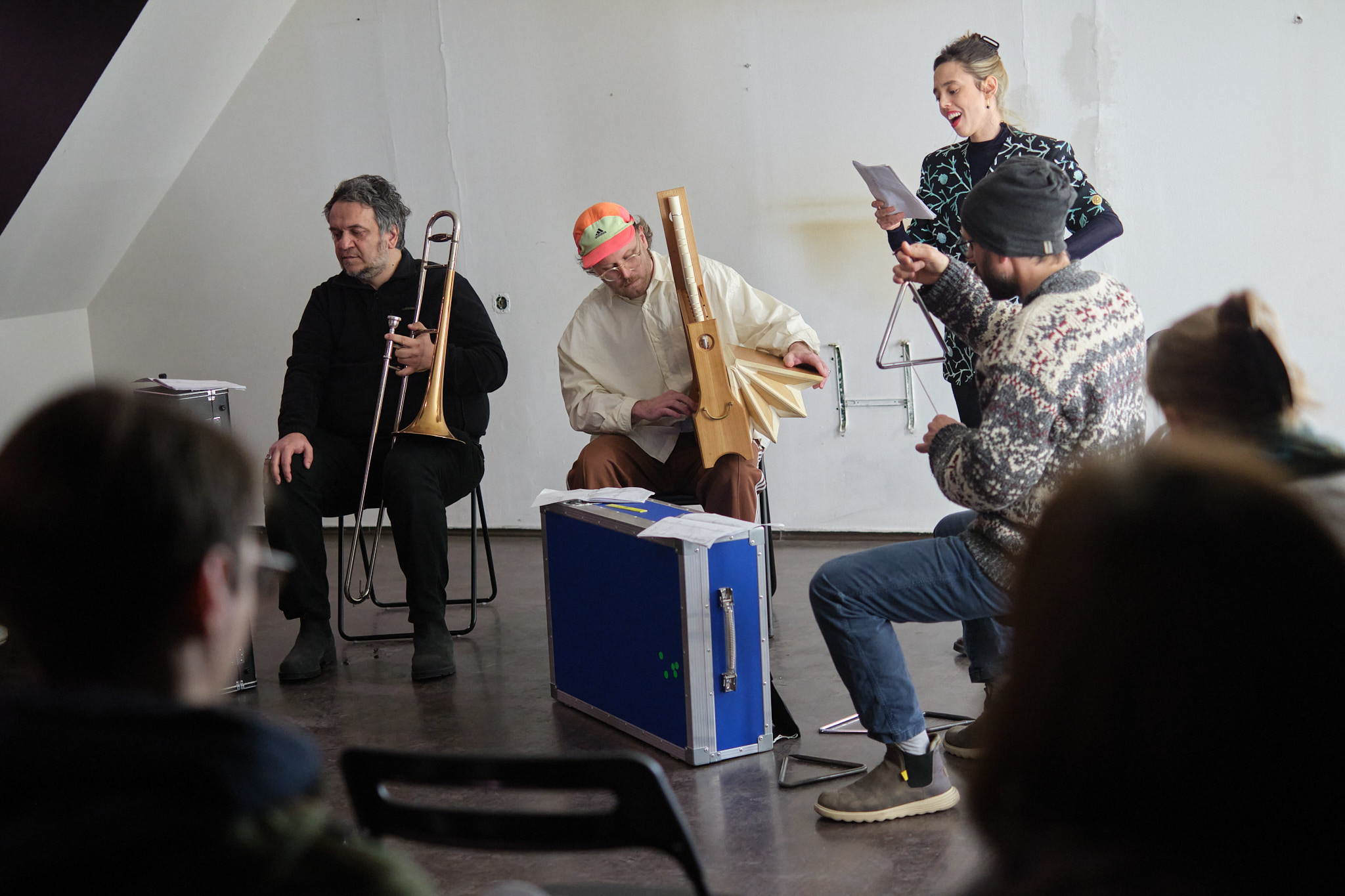 The film A Song to the Oar (2024) by the Tizintizwa collective is screened as an intervention in the Kinoteka Cinema program, shown before regular program as an homage to the practice of Moroccan militant cinema. Created for public space, this two-minute film collage connects the history of piracy in North Africa with today’s economic and authoritarian oppression, where football stadiums become rare places of expressing dissent. Through a performance at Klet and an installation in the Bogdan Ogrizović Library and Reading Room, Anton Kats creates a space for the voices of artists, musicians, activists, poets, and theorists.