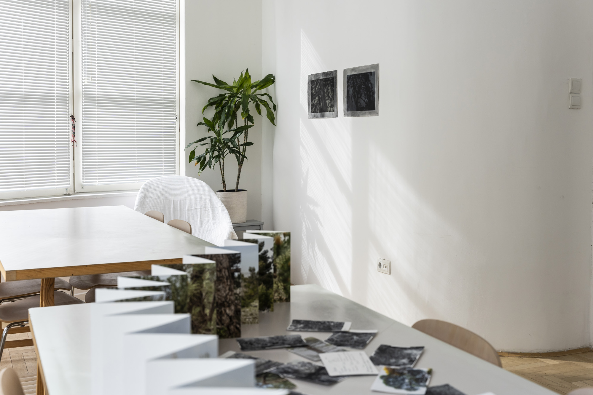 The possibility of tenderness in relationships between different living beings is found in the photographs, film, and sound work of Ana Opalić, exhibited in WHW’s office space at the top of a building on Bogovićeva Street. From the terrace overlooking the city, we encounter the cypress trees in front of the artist’s family home, which she has been observing over the years, safeguarding them from misunderstanding.