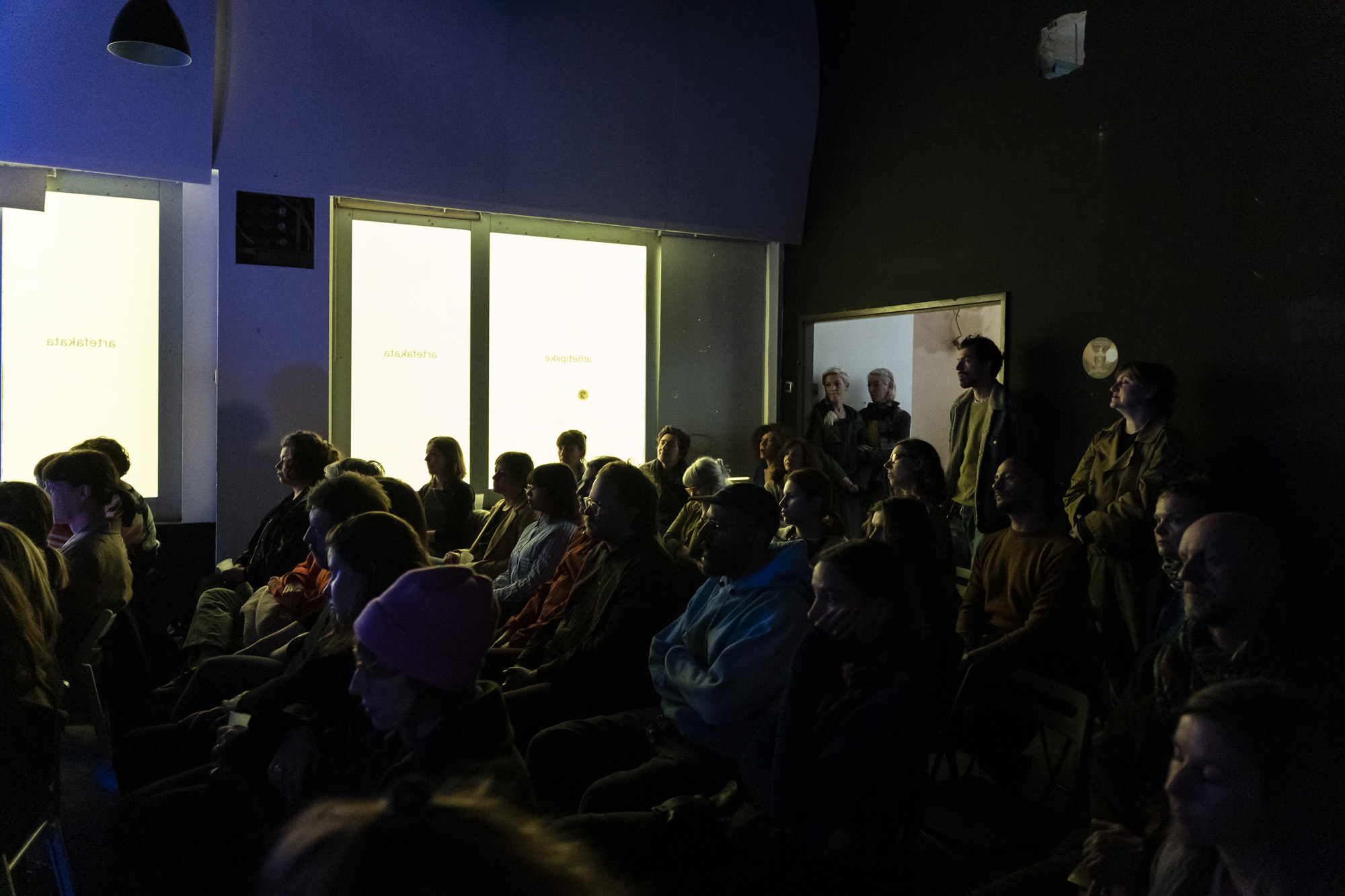 Motivi vode, granica i izmještenosti, koji se opetovano pojavljuju u recentnim radovima Ayeshe Hameed, potiču na razmišljanje o iskustvima i materijalnostima migracija te, u širem smislu, odnosima između ljudskih bića i onoga što ljudi percipiraju kao prirodu. Ovaj performans, realiziran u suradnji s Bojanom Gagićem i Adamom Semijalcem, poziva publiku da se uključi u ono što Bint Mbareh naziva „agresivnim slušanjem,“ kroz improviziranu izvedbu koja istražuje pojam exaqua, koji je iskovala M. NourbeSe Philip u svojoj pjesmi Zong! kako bi opisala vodeni ekvivalent ekshumacije – čin ponovnog prisvajanja iz zemlje. Ovo prisvajanje koristi poeziju i zvuk kako bi se fragmentiralo svjedočeći uništenju svih razmjera – od genocida do osobne tuga i gubitka.
